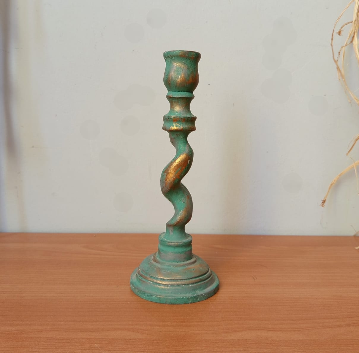 شمعدان پیچ کوچک سبز پتینه طلایی